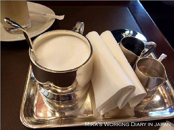 砂糖和鬆餅的楓糖都用美美的食具裝著